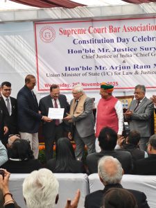 The Hon’ble Chief Justice of India, Justice Surya Kant along with Union Minister of State (I/C) for Law & Justice, and Parliamentary Affairs, Shri Arjun Ram Meghwal Honours Senior Advocate Rajiv Dutta on Completing 50 Years at the Bar.